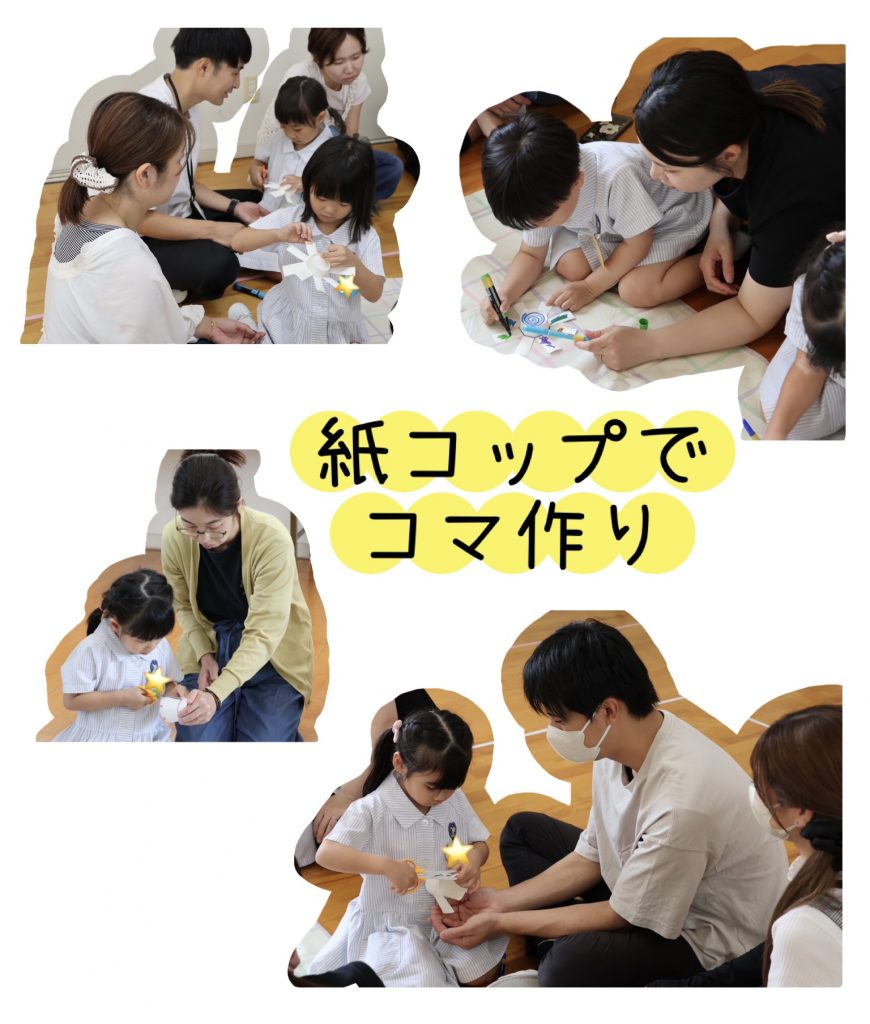 次は、紙コップコマ作り✂️