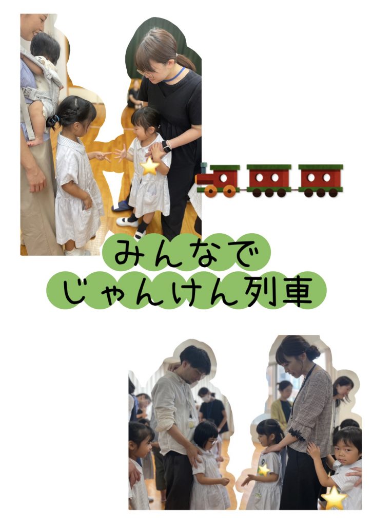 まずは、お母さん・お父さんとペアになって、じゃんけん列車!!