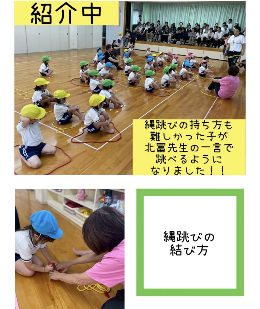 片付ける時も、自分で縄跳びを結べると自信に繋がりますね♪