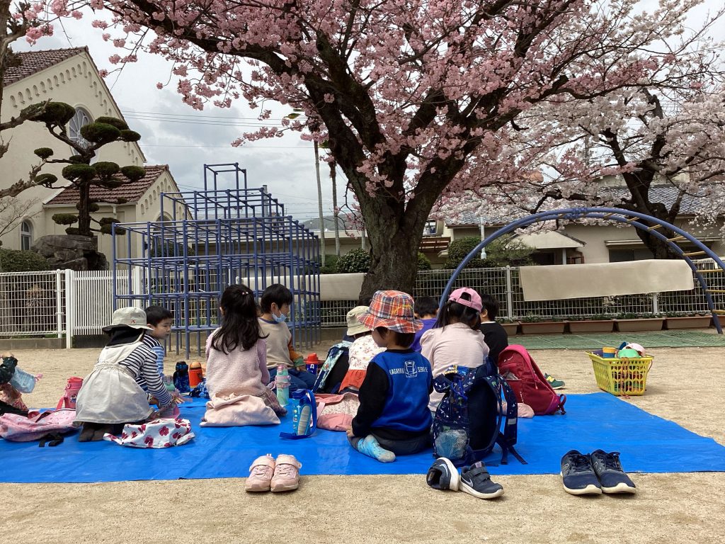幼稚園の桜も満開!お預かりの子ども達とお花見をしました!